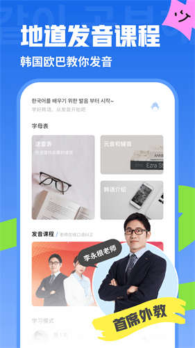 韩语U学院app是一款系统性的语言学习工具,应用区别于市面上泛泛而谈的通用类应用,从构架上就精准瞄准了韩语发烧友们的深层需求,致力于将兴趣转化为持久而高效的学习动力,应用内容构建严谨,从最基础的元音辅音、发音技巧,到日常会话、语法解析,乃至深层的文化背景介绍,形成了一条清晰的学习路径。韩语U学院app这款应用将许多分散的兴趣点串联起来,整合成有梯度、有趣味的知识模块,用户不仅能学到标准首尔音的发音秘诀,还能解锁爱豆访谈中的地道表达,甚至读懂综艺节目里的幽默字幕,因此,它提供的不仅仅是单词和语法,更是一个通往韩国当代文化生活场景的窗口,让发烧友们的热爱变得更有深度和内涵。对于渴望真正掌握这门语言而不仅是浅尝辄止的发烧友而言,应用提供的正是一种有方法、有陪伴、有温度的长期学习解决方案。