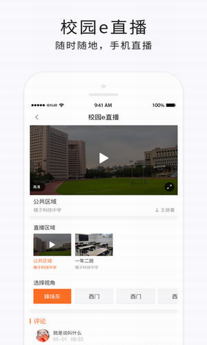 2、在查看校园直播课堂直播时,能够进行视角切换,教室后、教室门口、教室前等都能切换;