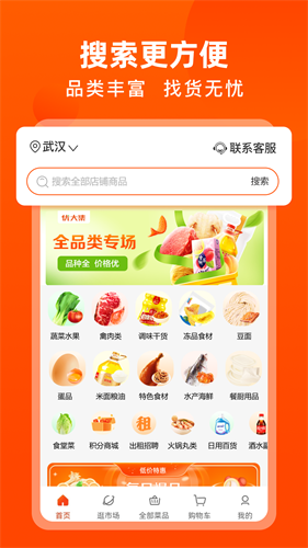 每日新鲜直供蔬菜瓜果、精品肉禽蛋类、粮油调味、鲜活水产、速食冻品等千余种商品,轻松满足家庭每日三餐食材需求。