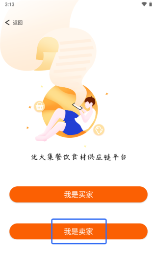 1、进入优大集App,找到【我的】板块,选择“我是卖家”;