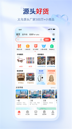 小商品城下载app是一款专为电商从业者与小微创业者打造的采购利器,作为义乌国际商贸市场的官方指定移动平台,APP打通了从工厂到终端的全链路交易通道,真正实现厂家直供、价格透明、品类齐全,无论是跨境电商卖家、社区团购团长,还是夜市摊主、直播带货达人,都能在这里找到覆盖日用百货、家居饰品、玩具文具、节庆用品等数十个类目的海量现货。小商品城下载app依托实体市场资源,线上商铺与线下档口相互对应,确保货源真实可靠。更引入3D全景地图导航功能,即便足不出户,也能像亲临市场般精准定位目标店铺。特别针对跨境电商、社交电商及新兴零售渠道,平台已与亚马逊、速卖通、拼多多、淘宝等主流平台卖家形成稳定供货网络,成为众多电商从业者的首选货源基地。加上实时直播、智能推荐和全景导航等创新功能,既提升了采购效率,也增强了用户体验。选择小商品城,就是选择一个值得长期信赖的生意伙伴。