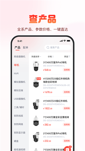 1、集成安防全产业链资源覆盖,整合监控设备、门禁系统等全品类产品参数查询与在线配单功能。