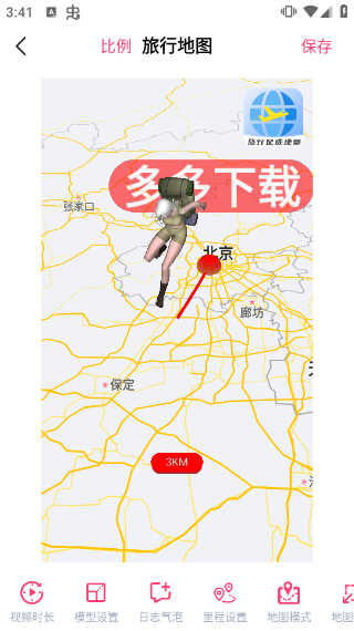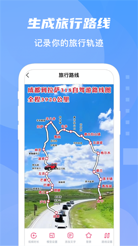 将数据都输入后,应用会智能生成旅行路线,用视频展现您的旅行足迹。