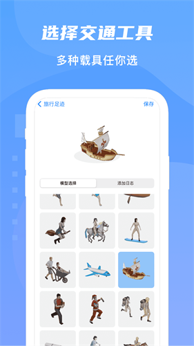 支持交通工具的选择,有3D模型可以选择,多重中工具任意选。