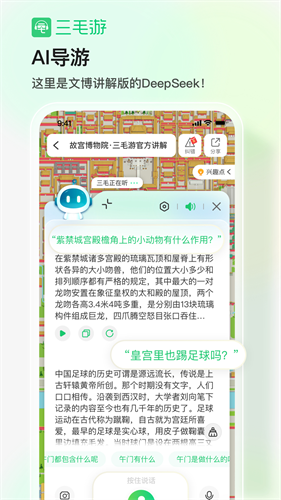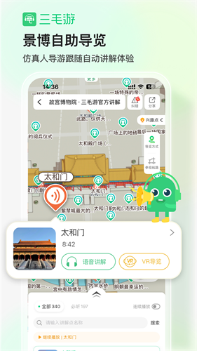 三毛游app免费版是一款将科技与人文深度结合的智能旅行导览应用,依托腾讯搜狗与新东方教育集团的联合投资背景,已覆盖全球超过15000个景区与博物馆,服务超5000万用户,其核心亮点在于专利微定位技术,能精准触发仿真人语音讲解,仿佛专业导游一路随行,配合三维手绘地图、720度VR云游、离线下载等实用功能,无论是在故宫细品古建之美,还是在卢浮宫遥望蒙娜丽莎,都能获得沉浸式、有温度的文化体验。三毛游app免费版这款应用汇聚了数千位签约金牌讲师,提供从文博精讲到citywalk的多样化人工服务,同时上线少儿美育学堂,每日限免研学课程,兼顾亲子家庭需求。无论是线下实地探访还是线上云体验,这款应用都让旅行真正成为一场行走的课堂。