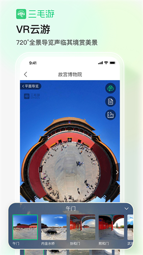 4、720°VR全景云游模块收录全球500+景区实景影像,足不出户即可预览目的地建筑细节与环境风貌。