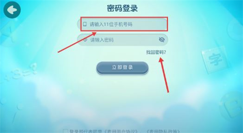 3、密码登录页输入手机号后,点【找回密码】进入密码找回页。