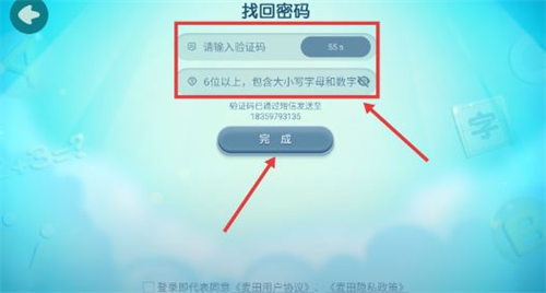 4、填验证码与新密码,点【完成】即可重置登录密码。
