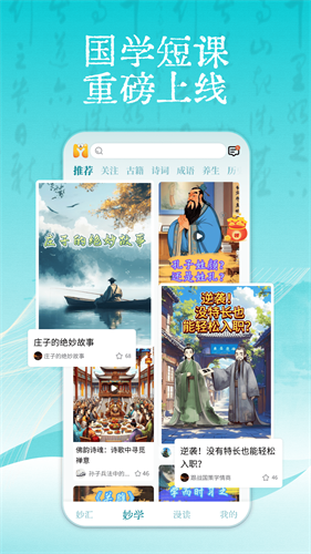 名师倾囊相授,从诗词到历史,从传统文化到书画养生,满足你的一切国学求知欲。