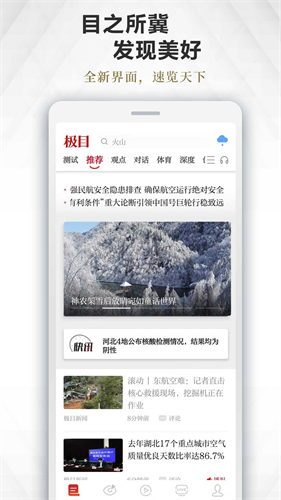 极目新闻下载手机版是一款移动新闻资讯平台,它以湖北日报传媒集团的深厚积淀为基石,应用将传统媒体的专业基因转化为新媒体时代的动态洞察力,用温润而有力的方式将世界装进用户的口袋里。这款应用用算法与匠心编织出多维立体的信息防护网,用户晨起通勤时,定制播报自动浓缩昨夜全球要闻,本地民生政策已提炼成可执行的要点清单。极目新闻下载手机版这款应用打破传统媒体单向传播的壁垒,通过政务服务入口直接对接办事需求,商务板块智能衔接消费场景,使新闻阅读不再是时间的消耗而是生活的增值。在这里,新闻不再是冰冷的文字堆叠,而是带着体温的陪伴者,使用户在指尖滑动间即可纵览宏观格局与微观现实。感兴趣的用户不妨下载体验一番吧。