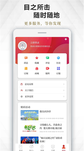 4、手机读报:手机上的楚天都市报,随时随地轻松悦读。