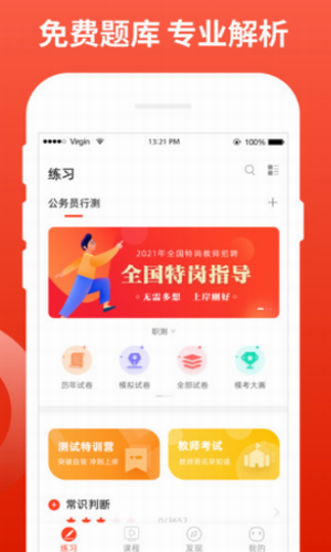 1、软件按照不同的知识分类进行行测和申论进行分开设计,通过对于海量的题库内容导入以及模式设计,让用户更好的进行分类讨论强化;