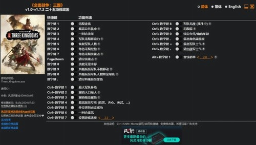 全面战争三国修改器风灵月影版 v1.7.2 电脑版