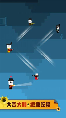 跳跳神枪手最新版本破解版是一款休闲娱乐射击类型的手游,游戏操作方式很简单成为最后的吃鸡者,一遍射击来袭的敌人,需要玩家们一遍躲避陷阱,玩法超级简单,在游戏中,玩家可通过不断晃动的枪口对准敌人,将其击中并可击毙敌人,没有命中的话则游戏失败,击毙敌人就可往上跳一阶,击中头部获得双倍积分,击中非头部位置获得普通积分,积分即为金币,金币可以用来兑换枪支跟角色。