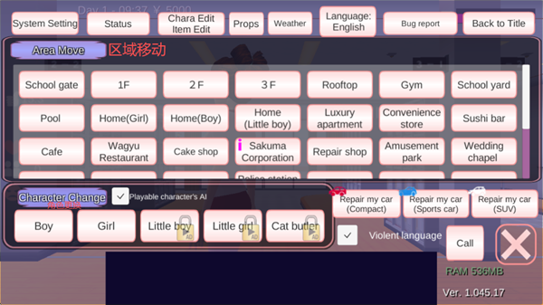 1、为了让大家更直观的了解游戏功能,特此进行了文本翻译,如下图所示;