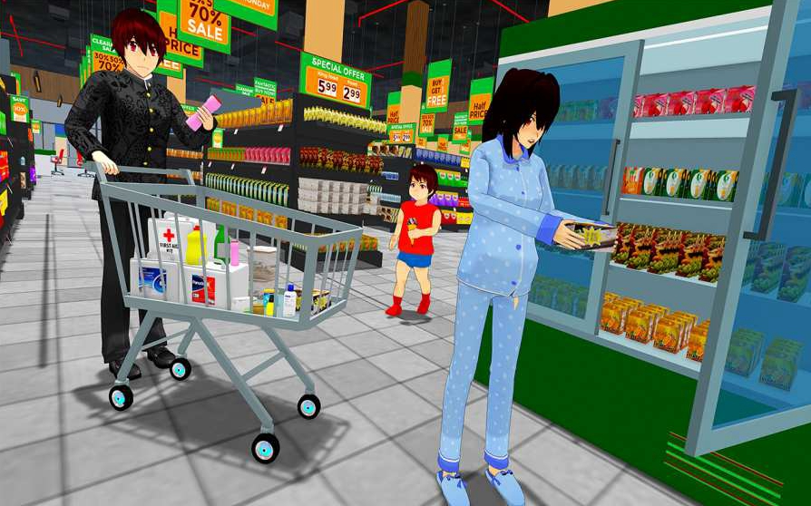 3、在这个动漫女孩游戏中为您设计的新 3d 环境。为终极游戏体验添加了高度详细的动漫妈妈模拟器和动漫爸爸模拟器角色。