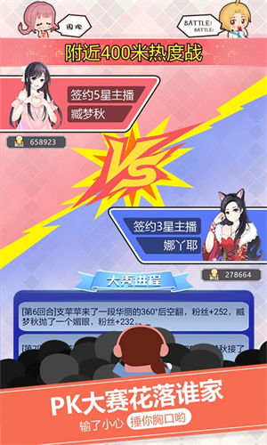 3、PK大赛最终会花落谁家,签约更高星级主播,赢得此次比赛。