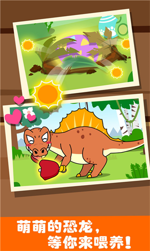 4、模拟孵蛋、喂养、逗乐恐龙、趣味游戏乐不停。