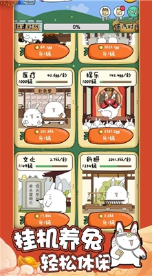 胖兔文明无敌版是一款可玩性很高,需要战胜很多对手的策略对抗类手游,在这里来扩建你的文明城市,树立属于自己的文明时代,游戏道具种类繁多,可选择性很强,是一个闲暇之余玩的休闲游戏,玩家在游戏中帮助胖兔子们获得资源来建设自己的帝国,还可以通过简单的操作发展产业,与邻国交接获得资金,游戏以非常独特的兔子文明为剧情,玩家进入到这个神奇世界之后将会指引所有兔子发展自己专属帝国,最终成为地球唯一文明。