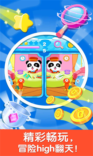 宝宝来找茬游戏是一款为儿童设计的观察力启蒙益智游戏,游戏采用四大全新启蒙主题,涵盖动物、交通工具、日常生活等多个认知领域,每一对卡通图片都经过巧妙设计,在保持整体相似的同时隐藏细微差异,引导孩子仔细比对、主动思考,通过精心编排的80多个趣味关卡,帮助孩子在玩乐中锻炼专注力、提升眼力与耐心。宝宝来找茬游戏的玩法直观到极致,看图、比较、点击,三步搞定,连刚会点屏幕的小宝宝都能轻松上手。找不到差异也不用着急,攒下的金币可以召唤放大镜道具,瞬间锁定隐藏细节。更有趣的是,每过几关就能获得一把神秘钥匙,集齐后还能开启专属宝藏,让成就感满满当当。操作交互极简,仅需点击差异点即可响应,适配低龄用户操作习惯。此外,剧情式通关设计引入钥匙收集与宝藏解锁机制,增强目标感与重复游玩意愿,真正实现寓教于乐,是值得家长信赖的移动端早教工具。