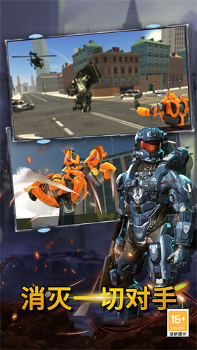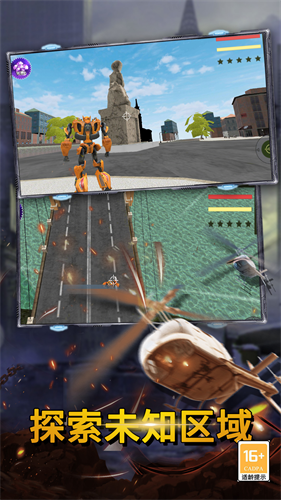3、玩家扮演一位机甲人,可以在机器人和豪车形态之间切换;