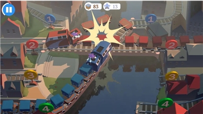 在游戏中玩家可以指挥整个欧洲世界当中的列车,好好规划各条列车行车路线以及行车时间,利用自己的大局观去指挥列车一列列的前行,在错综复杂的铁路上,让列车能够更加快速有序的行进,保证他们互不影响,都可以平安且及时的到达终点,顺利完成任务。作为调度员,玩家的任务就是让蓝色的列车行驶在蓝色的轨道上,红色的列车行驶在红色的轨道上,也就是说只有列车和行驶轨道的颜色相吻合,列车上的货物和星星才作数,简单来说,这就是一个颜色匹配的游戏。