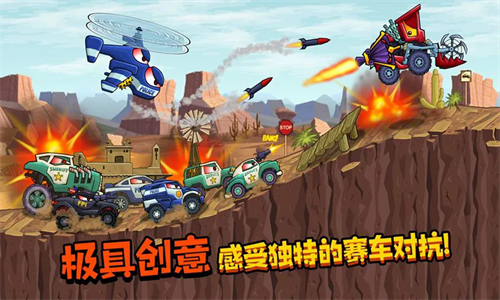 疯狂车吃车3破解版内购版最新版汽车全部解锁版是一款卡通风格的休闲闯关游戏,本作有全新的地图、更多的赛车以及更多的新玩法。游戏继承了前作的主要玩法,在曲折的赛道上横冲直撞勇夺第一,迅捷凶猛的车辆会伺机把你一口吞掉,所以你要夺取超级炮、加速器等装备抢先一步摧毁敌人到达终点。也继承了前作的操作方法,游戏依旧能够自动驾驶,只要控制倾斜按钮保持遥控汽车的平衡就可以。和前作不同的是在关卡开始之前加入了转盘玩法,每局开始的时候可以转一个转盘,转到的奖品可以用于本局游戏体验,另外游戏中的敌人数量也变多了,更加的刺激好玩。