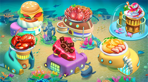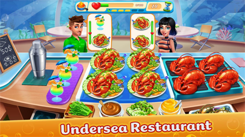 烹饪水族馆中文版是款非常梦幻有趣的模拟经营烹饪餐厅手游,在这里以海底为餐厅背景,玩家将会扮演一位厨师,在无尽的海洋中探索,找寻最最珍贵最美味的食材,制作出最棒的美食,让大家品尝鉴赏。游戏中的道具非常多,玩家可以自由利用,烹饪出你自己的美食,在您自己的许多大型餐厅的厨房里为心爱的顾客服务。您将有机会环游海洋并发现许多新颖独特的食谱。感兴趣的小伙伴还在等什么,快来加入我们吧