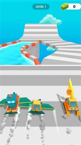 4、游戏中每次的跑酷都是随机地图,关关不同,而且这些汽车每个都有其独特的功能。