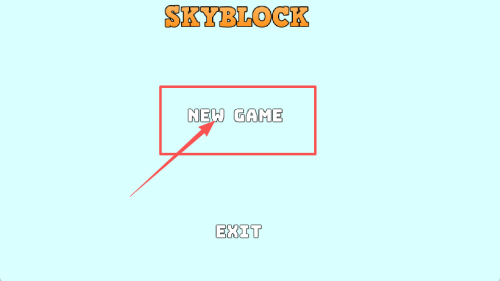 1、浅蓝背景橙色SKYBLOCK标题醒目,点红色NEW GAME按钮开始新游戏,底部EXIT可退出。