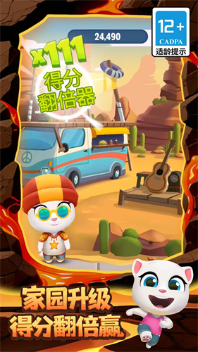 卑鄙的浣熊贼偷走了金子!玩家可以夺回金条,为会说话的汤姆猫家族建造并升级神奇的家园!完成的家园将解锁可供玩家探索和跑酷的新场景!赶快开心跑酷吧!