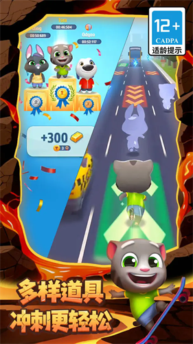 在特别角色的帮助下,玩家可以跑得更快,玩酷炫小花招!安吉拉公主、鲨鱼汉克狗和超级汤姆猫等待玩家的营救!