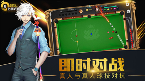 超级台球大师可以与在线玩家对战,在每一局游戏中,你能获得金币奖励,你可以使用这些钱币进入更高级别、奖金也更高的对战。