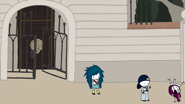 5、向右走和小男孩进行对话,之后进入身后的教堂当中。