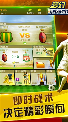 梦幻冠军足球破解版内置菜单版游戏亮点: