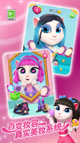 2、安吉拉更时尚了,时尚爱好者注意啦:安吉拉有一个专为时尚而设的迷人房间!漂亮的衣柜里满是服装和配饰,巨大的化妆台让你可以畅玩化妆游戏,迷你发廊让你可以尝试各种新发型。帮助安吉拉设计发型,用时尚和美妆来展现自我。