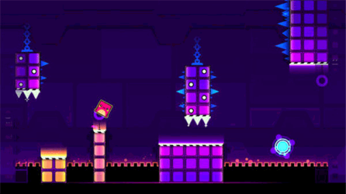 游戏的操作非常简单,主角方块会自己向着屏幕右边前行,而我们要做的就是点击屏幕让它跳跃起来躲避路上的障碍陷阱即可。