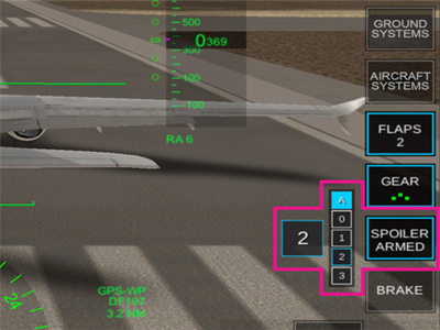 按下可伸出/收回起落架。确保 IAS(指示空速)低于“VLO”(最大起落架操作速度),以便延长它。