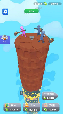 3、玩家唯一的任务是控制好自己的角色,用手中的锤子敲打高耸的塔楼来完成任务。