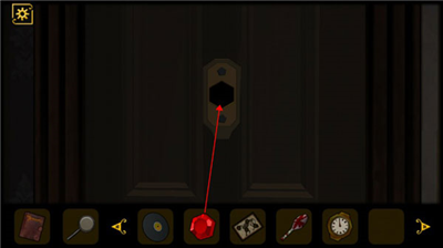 5、查看桌子抽屉,获得道具和查看日记,将红色机关石放入墙上的红色凹槽中,回头会发现进门处出现一只怪物,将门关上,注意门上的花纹