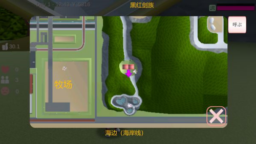 1、第一步需要先打开菜单的传送功能传送到牧场的位置。接着就使用飞行道具往牧场旁边的山上飞过去。