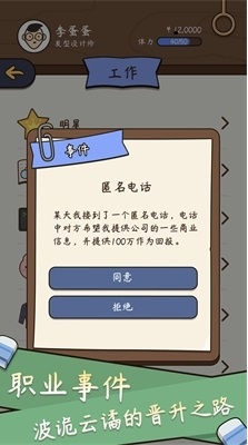 3、人际关系:玩家可以结交各种朋友和合作伙伴,建立自己的人脉网络,同时还要处理与他人的关系,提高社交能力。