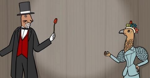 5、第五幕:帽子里伸出的手表示数字几,就点兔子先生的右手几下。