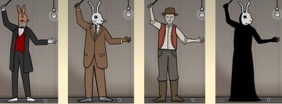 以兔子先生的魔术秀为核心场景,包含20个荒诞离奇的魔术表演桥段,如“虎口夺兔”“消失的兔子”等,每个魔术都关联着独特的剧情片段,串联起锈湖世界的神秘故事。剧情中充满隐喻和反转,例如魔术失败可能导致兔子失去肢体等惩罚性情节,加深故事的诡异感与沉浸感。
