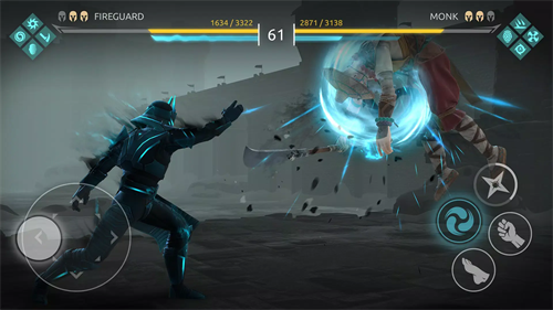 1、下载进入暗影格斗4手游,点击攻击按钮,即可快速攻击;