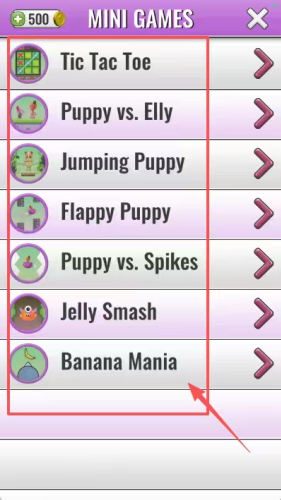 4、点迷你游戏页面的粉红箭头选Banana Mania,或点井字棋图标开始益智小游戏。