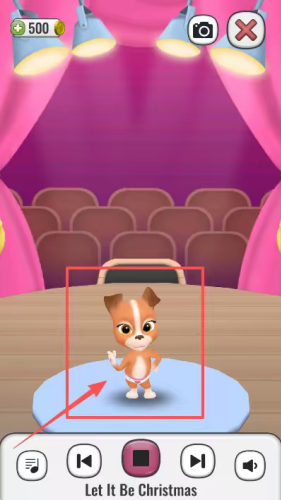 3、点舞台下方音乐符号按钮播放歌曲,或点右上角相机图标给表演小狗拍演出照。