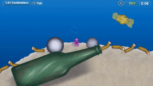 4、通过移动小章鱼进行吃垃圾,时间花的越少评价越高。