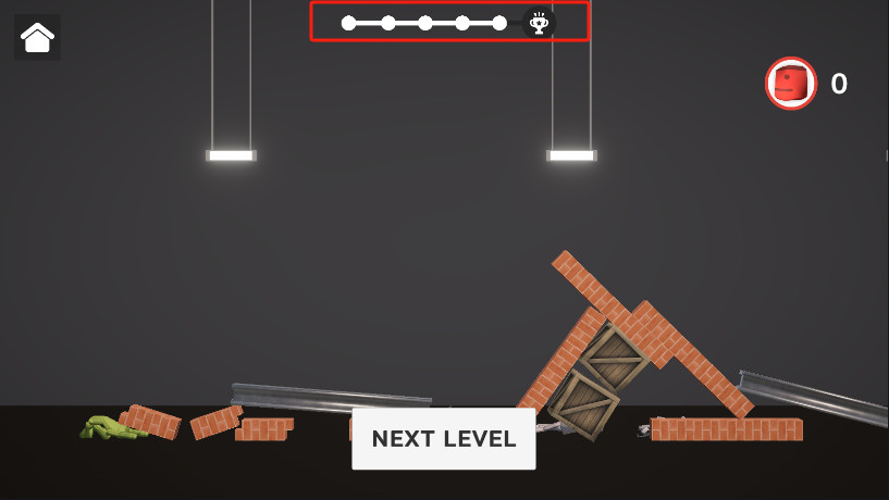 5、上方会显示当前关卡内的游戏进程,获得胜利并到达终点的位置时即可解锁第二关。