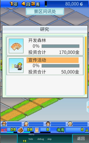 3、丰富的建设元素:玩家可以建设道路、景点、服务设施等,每个选择都会影响到公园的运营和游客的满意度。